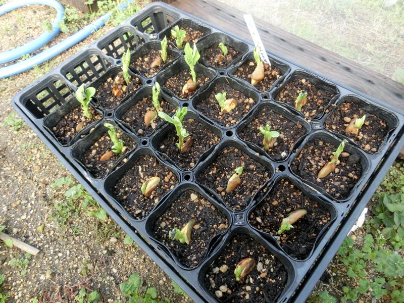そら豆は、わざと豆を出して種まきをします。