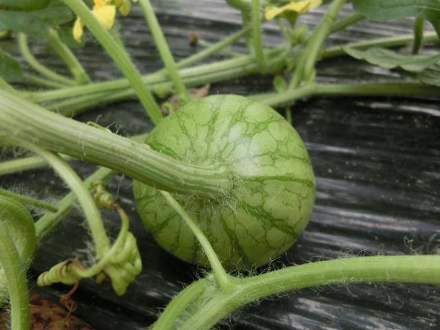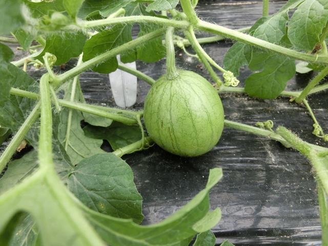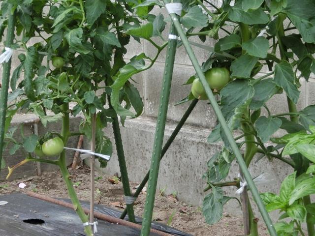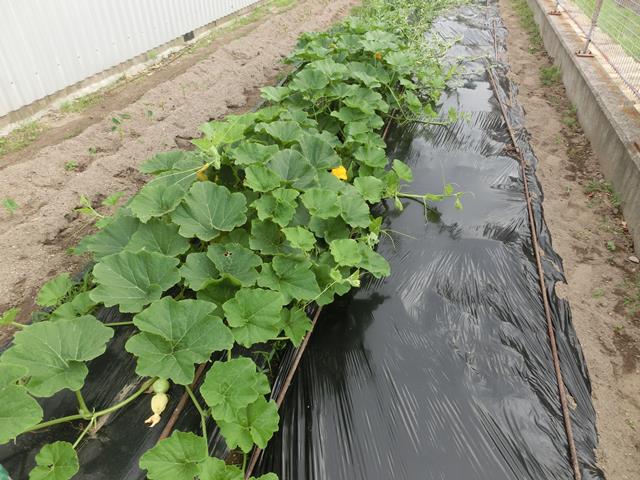 ジャガイモの後にマルチを張って、蔓を誘導しました。