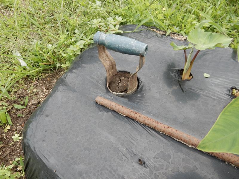 いもの脇に穴を堀リます。