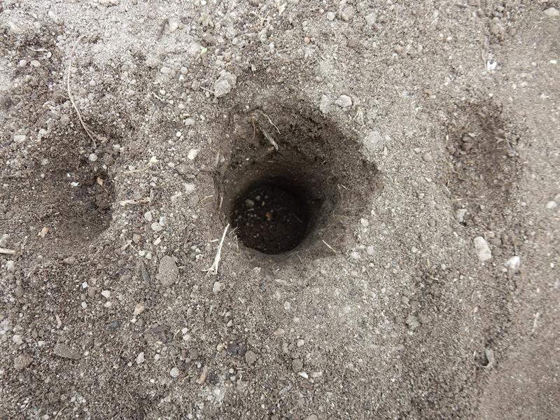 穴あけが済んだら肥料を投入して土を戻します。
