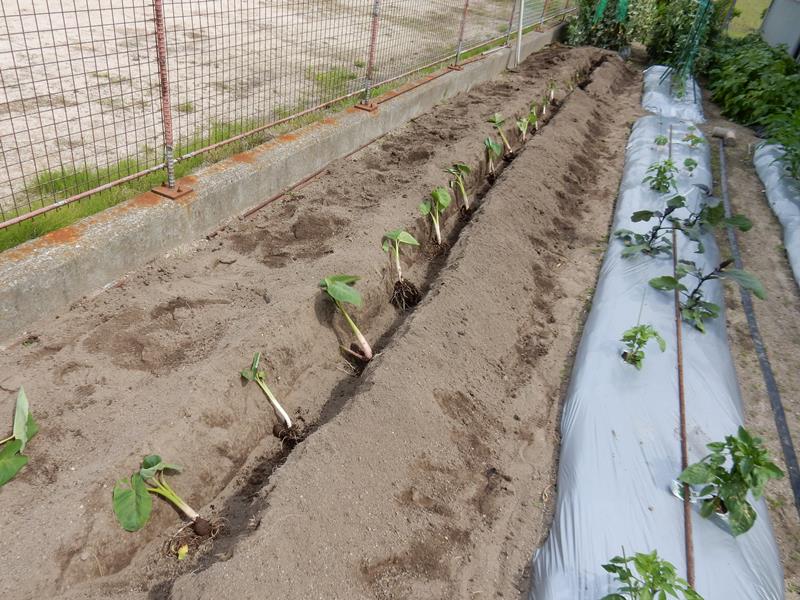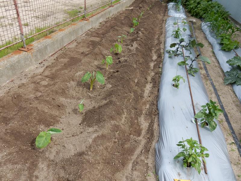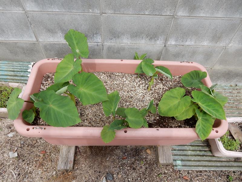 これで完成 里芋は水やりをしっかりします。