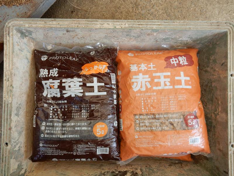 土は赤玉15L 腐葉土5L 培養土適宜(W)