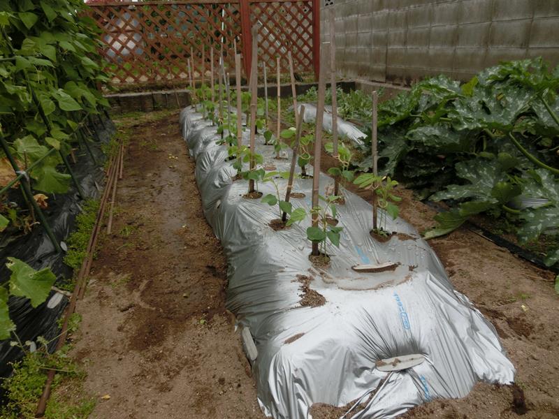 乾燥牛糞、油かす、化学肥料を鋤き込み、畝を立て、マルチ張り。