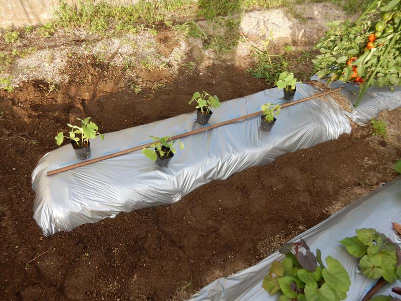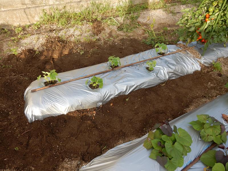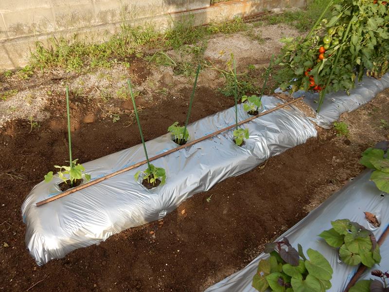 18:00 少し涼しくなったので急遽キュウリを植え付け