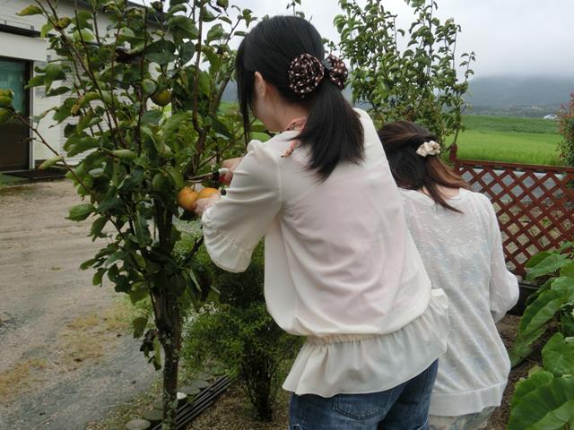 収穫には、夏休みで帰省中のMKちゃんと、KZMちゃんが手伝ってくれました。