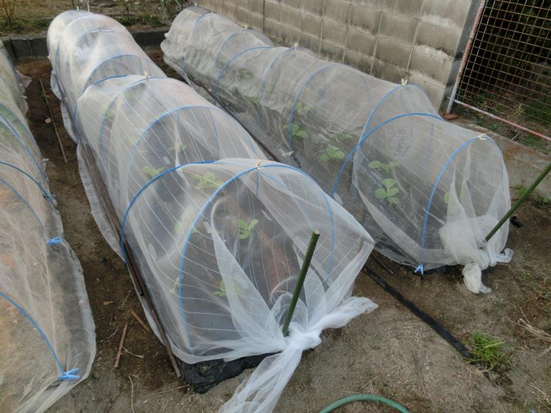 植え付け後は防虫網でガード