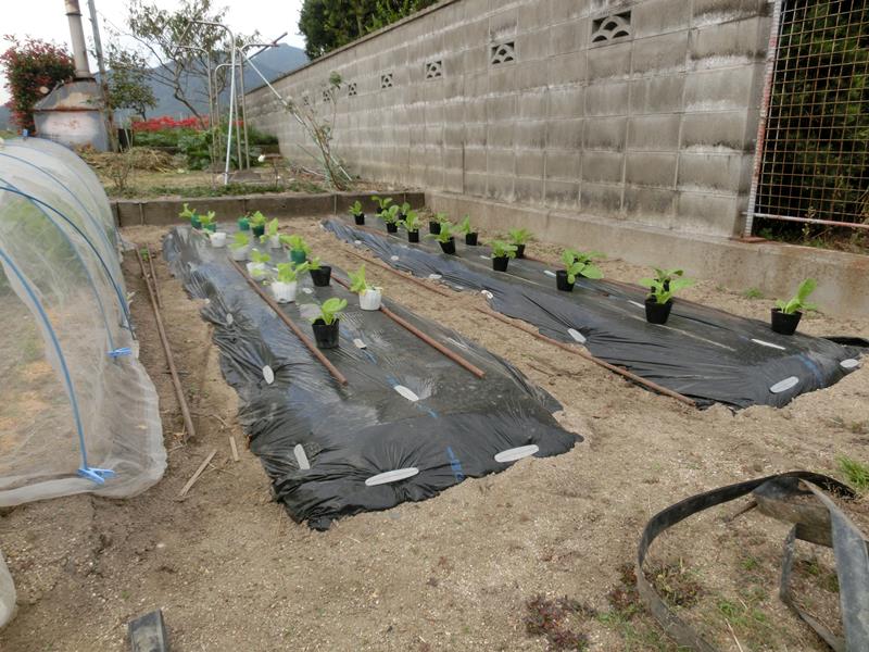 午後から、白菜、キャベツ、レタス、カリフラワーの植え付け。