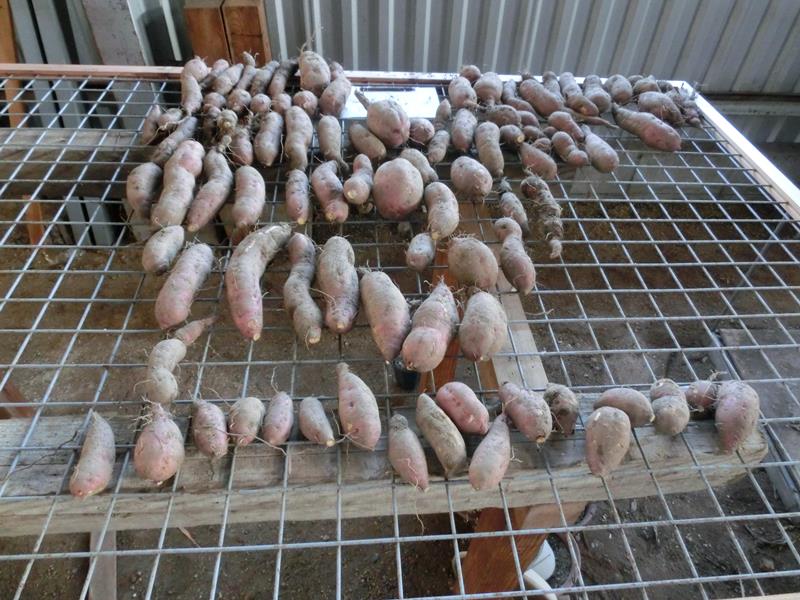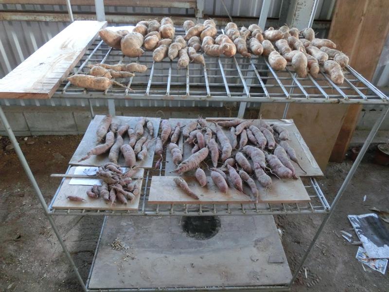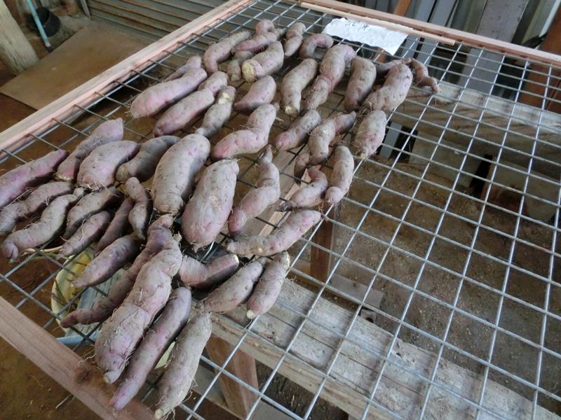 ところで、芋を乾燥させる棚ですが、今までは地面の上に