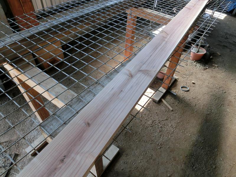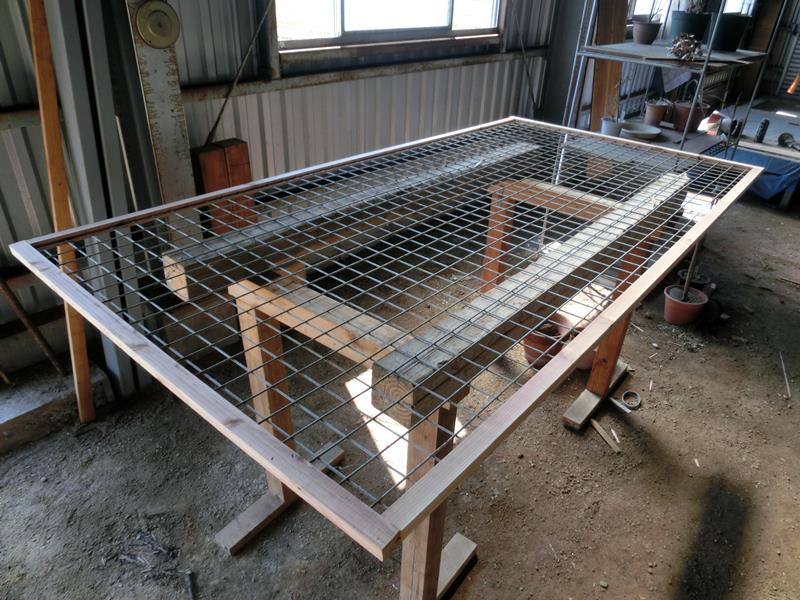 バタ角の厘木を置いて、メッシュを引いた台で乾燥させていました。