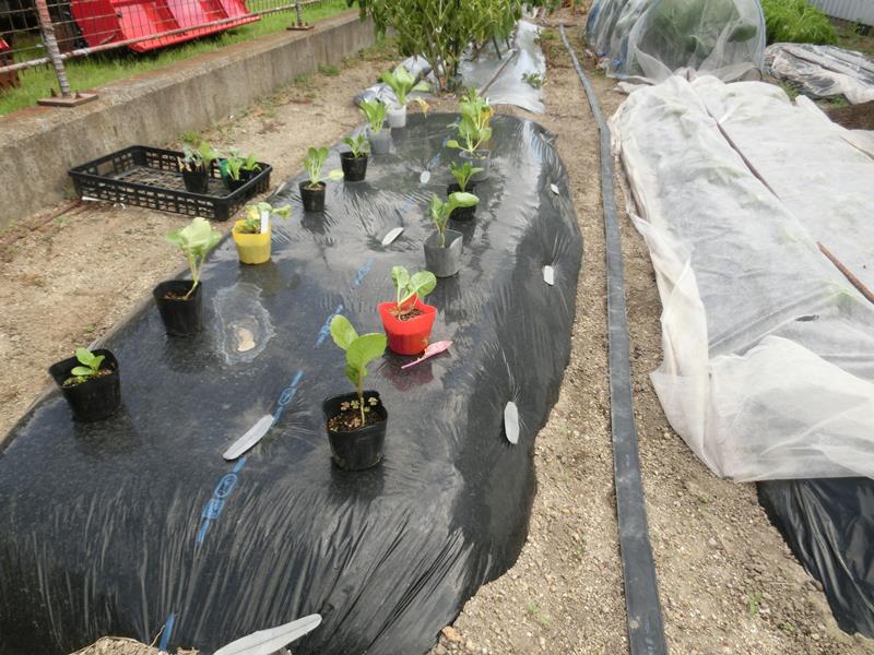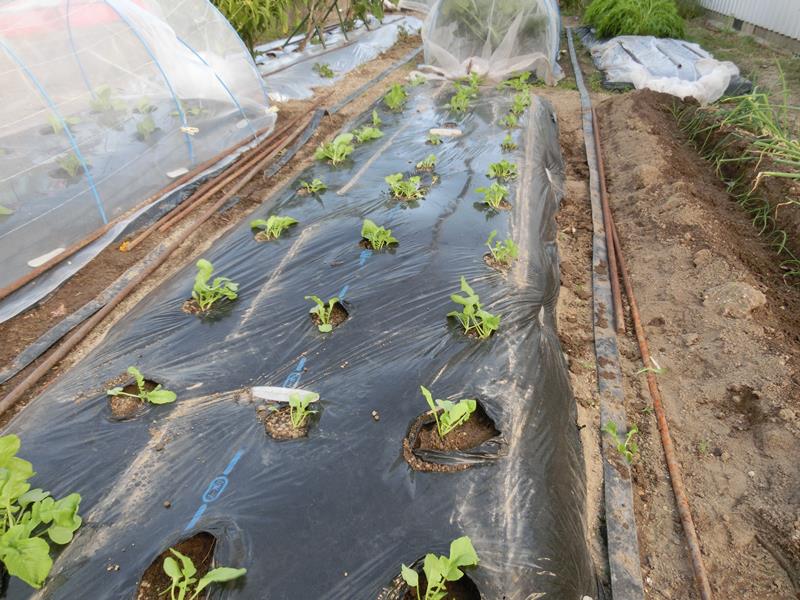 植え付け後、防虫ネットで虫対策。