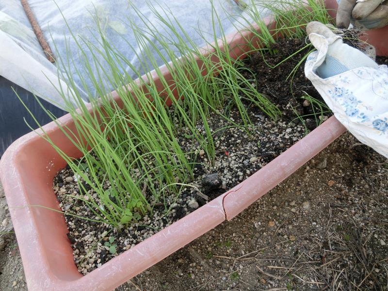 次は太ネギ。右は先日植えた九条ねぎ。