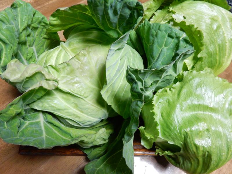 持ち帰った、レタスとキャベツの写真です。