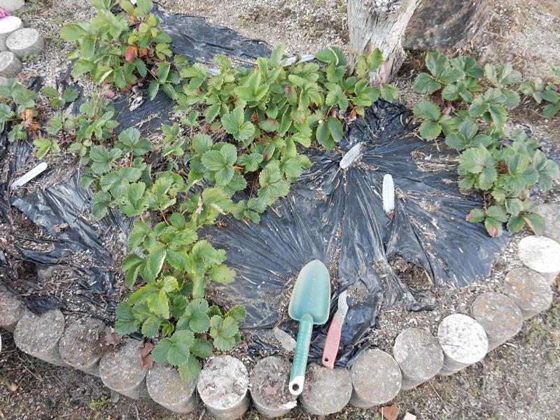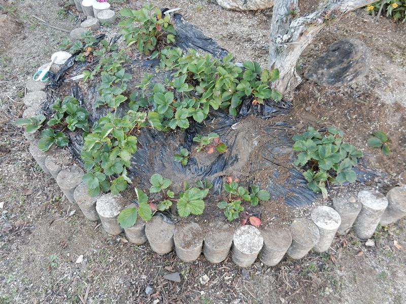 夕方、野良いちごのスペースが空いているので、マルチの外の部苗を移植。