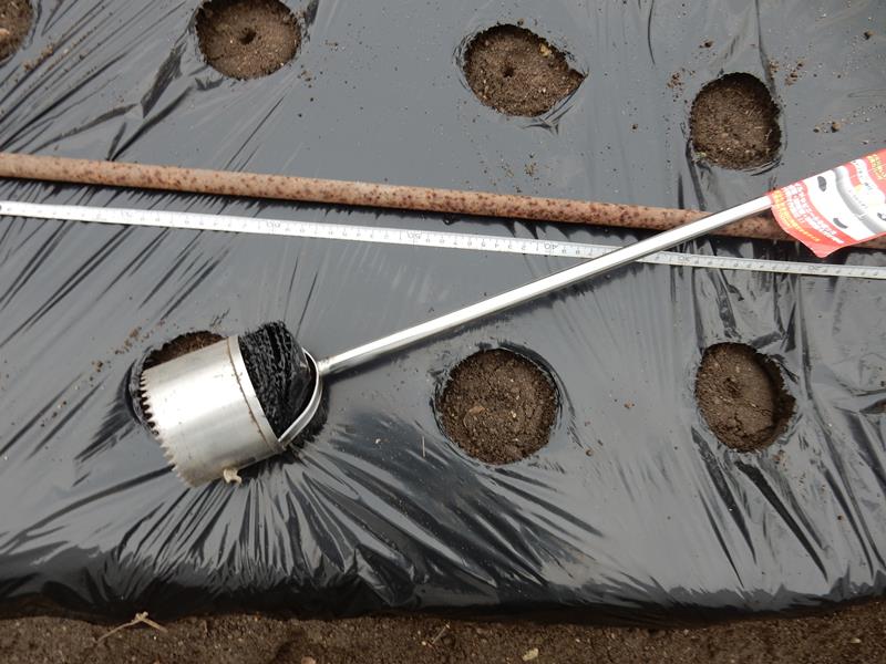 午前中に姉が買ってきてくれたマルチの穴あけ
