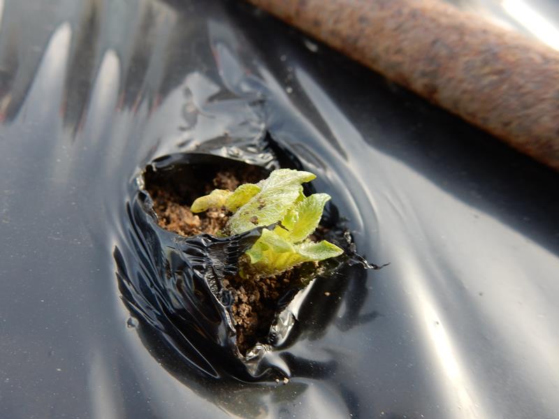 マルチが膨らんできたので、ハサミで穴を開けてみました。