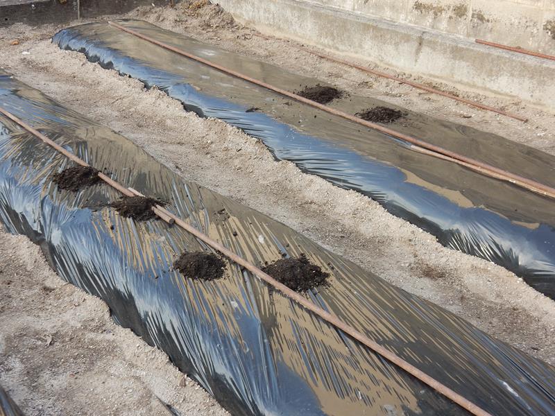 マルチに穴を開けたところは土寄せをしておきます。