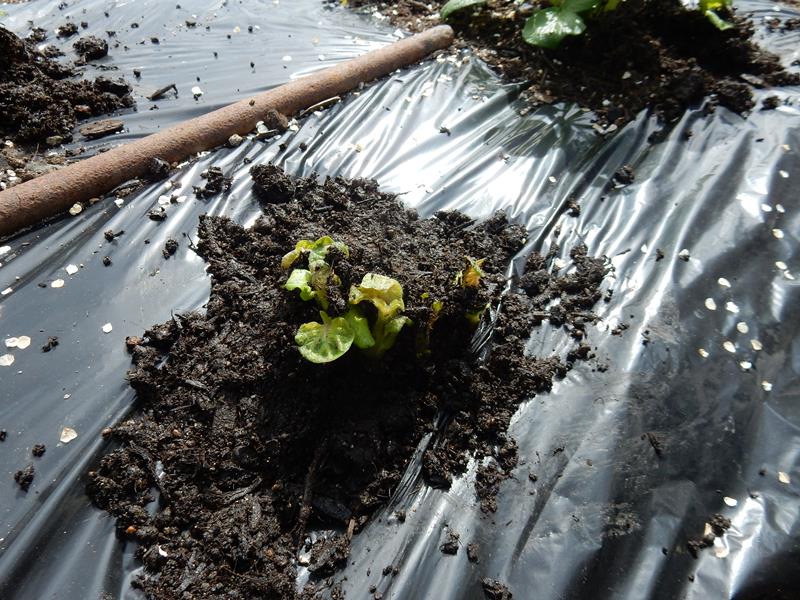 マルチを突き破りそうな勢いで芽が大きくなっています。