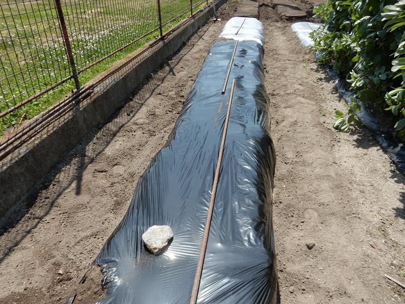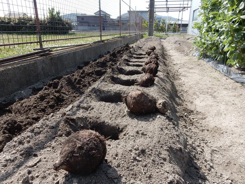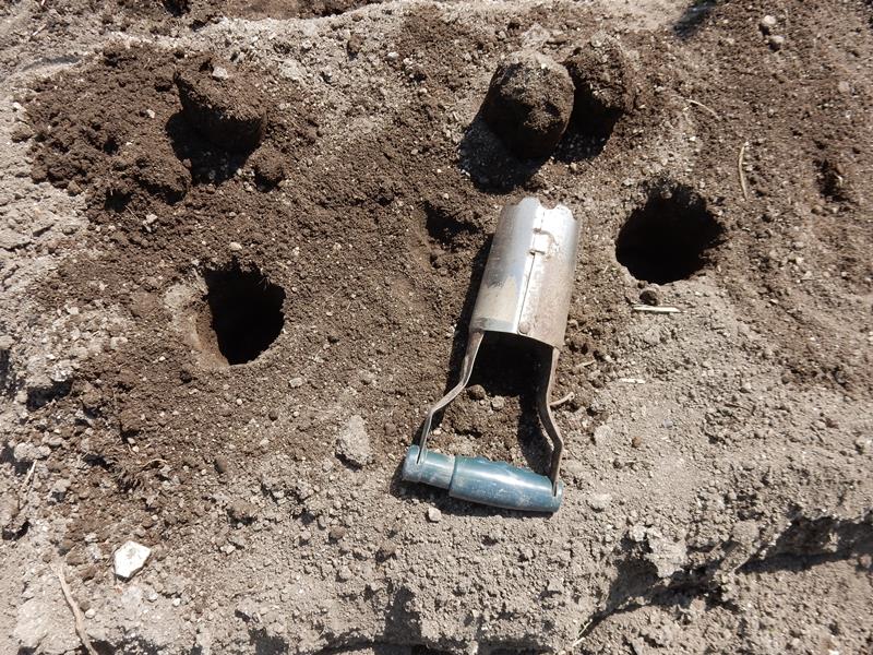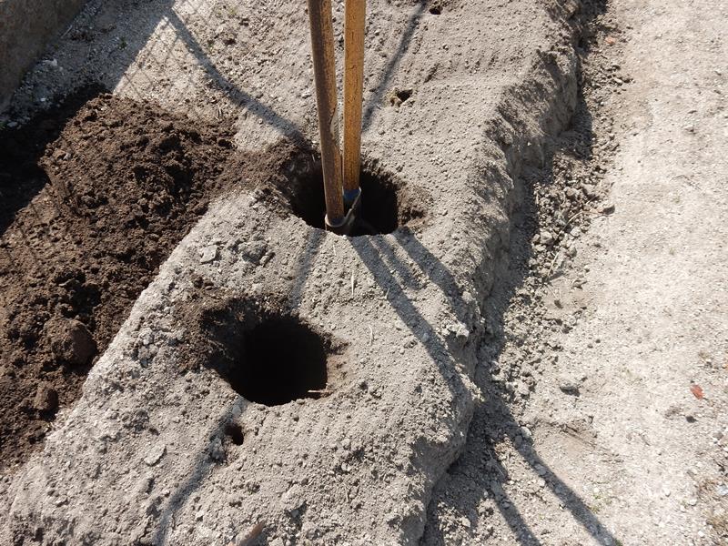早速穴掘り開始。昨年同様に深植え逆さ植