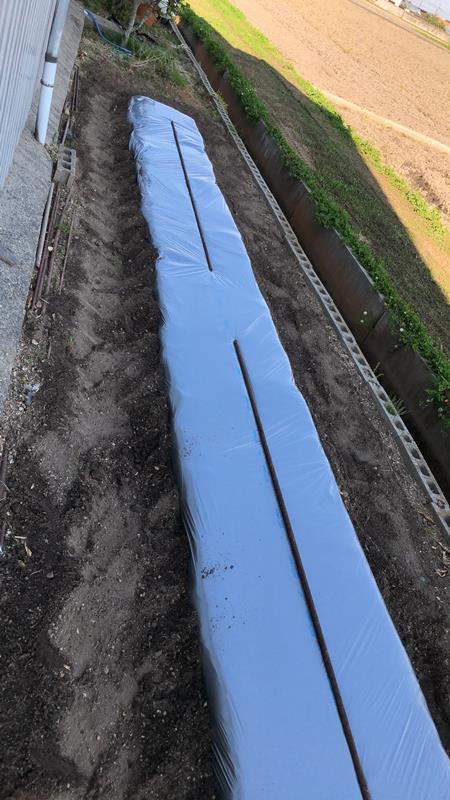 マルチを張って本日の作業終了