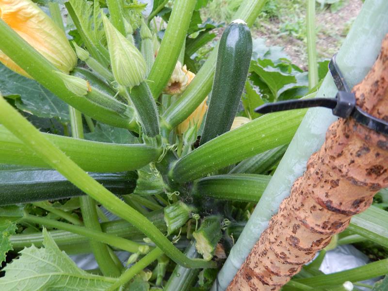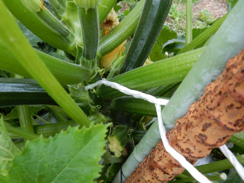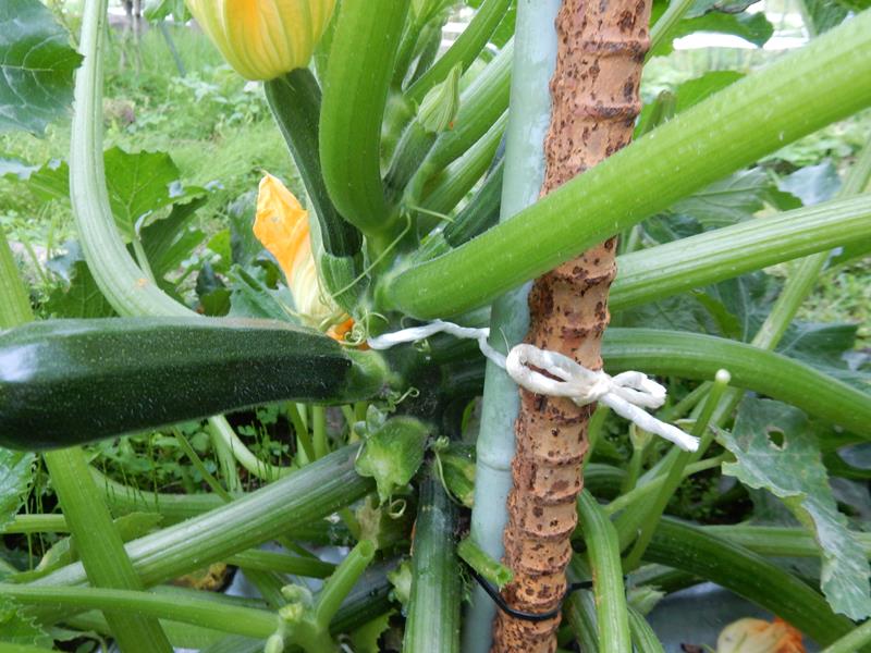 ズッキーニが大きくなったので上に誘引します。
