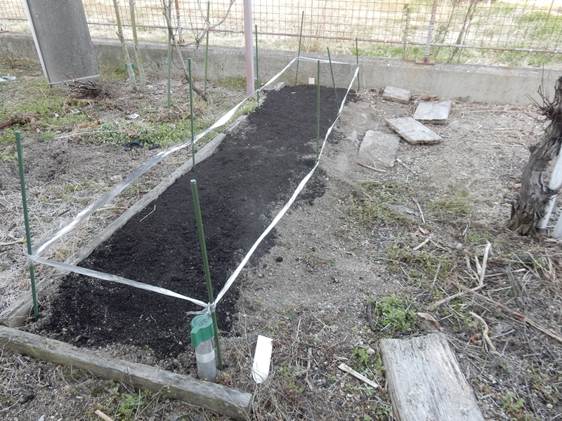 草を取って、牛ふん堆肥を入れておきます。