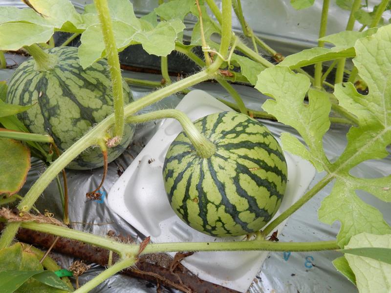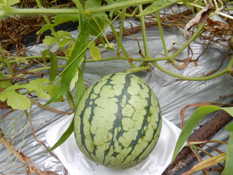 今年はスイカの下にフルーツマットなるものを敷いてみました。