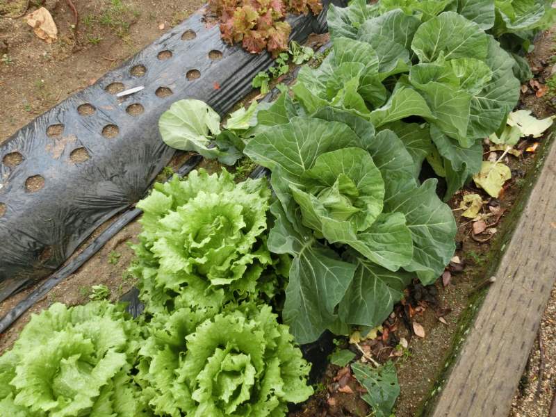 空いていた畦に、チシャの植え付け、春菊の種蒔き