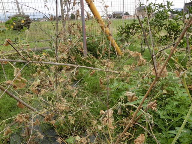 刈り取った蔓を処分。ついでにナスやピーマンも撤去。