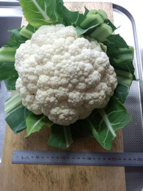 畑にあと3個残っています。こんなに立派なキャベツが出来たのも、