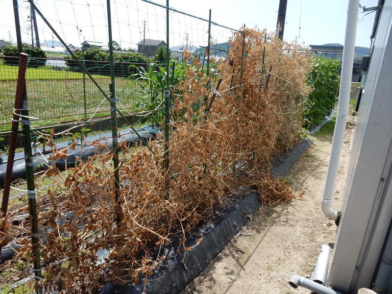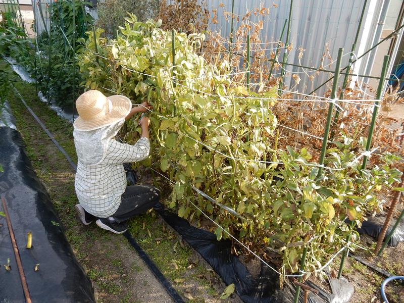 快晴です。今日はピースの後片付けとサツマイモの植え付けです。