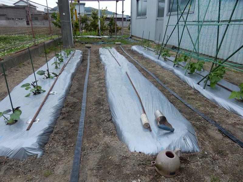 購入した苗は ナス 筑陽x2 庄屋大長x1