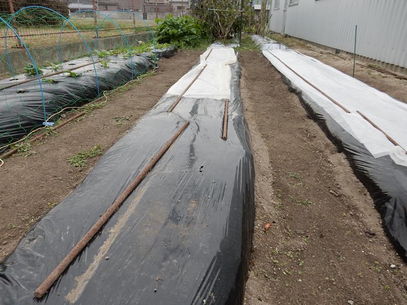 エンドに霜よけのネット&そら豆の植え付け