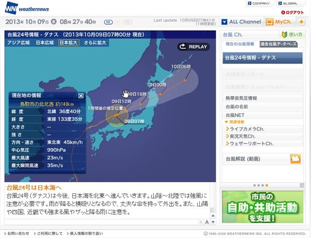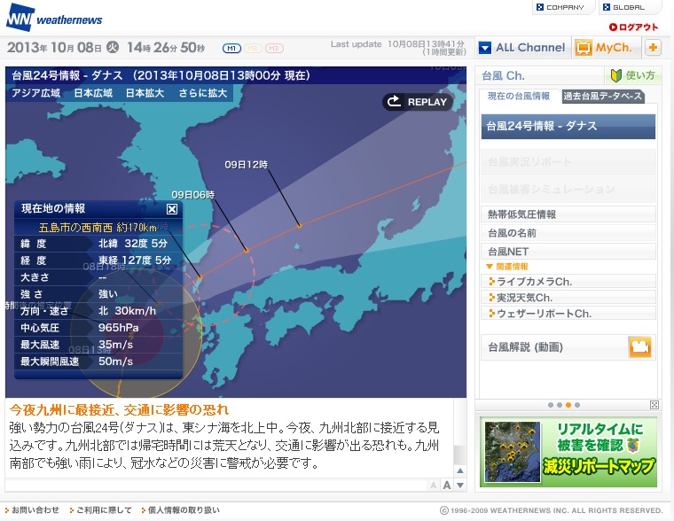 9年前にうちの屋根瓦を吹き飛ばした台風もこのコースだった。