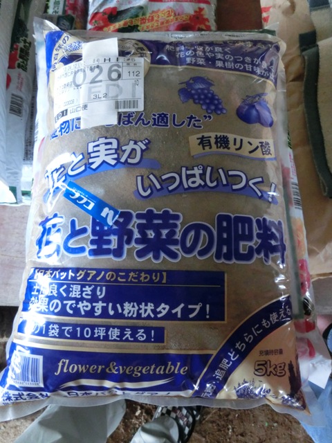 買忘れた、マルチと肥料。花と実がいっぱい付く肥料。有機リン酸が多いと良いらしい。