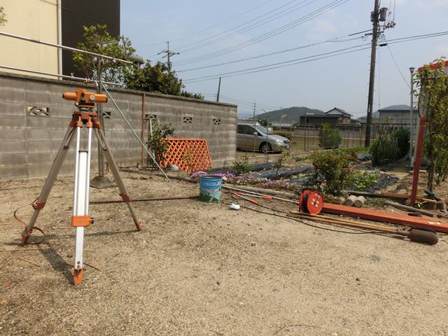 レベルで水平を計り、高さを決めます。