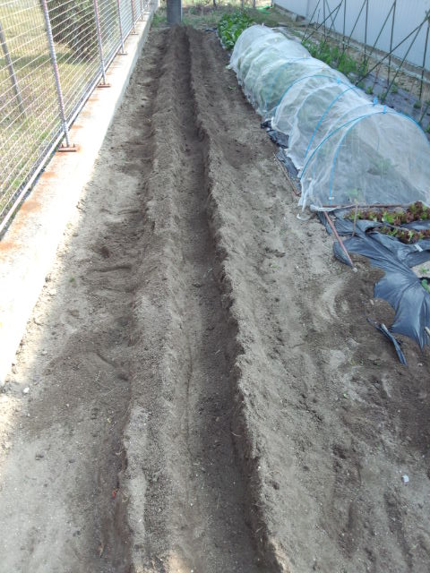 今年は、畦を縦一列にしてみた。この方が、土寄せが良いとか・・。はい仰せのままに。