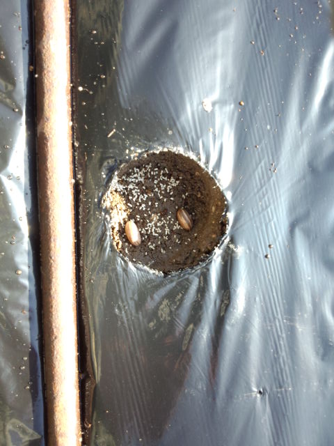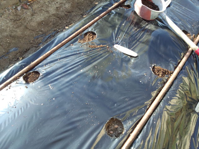 こっちも30cm間隔で植える。結構発芽率が良いので2粒にする。