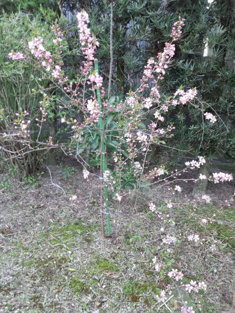 去年、このスペースが手狭になったから、桃の木を2本伐採したんだけど、桃は、2本ないと受粉しないとか・・・。それで3本も飢えていたのであった。完全に忘れていた(汗