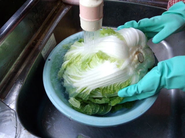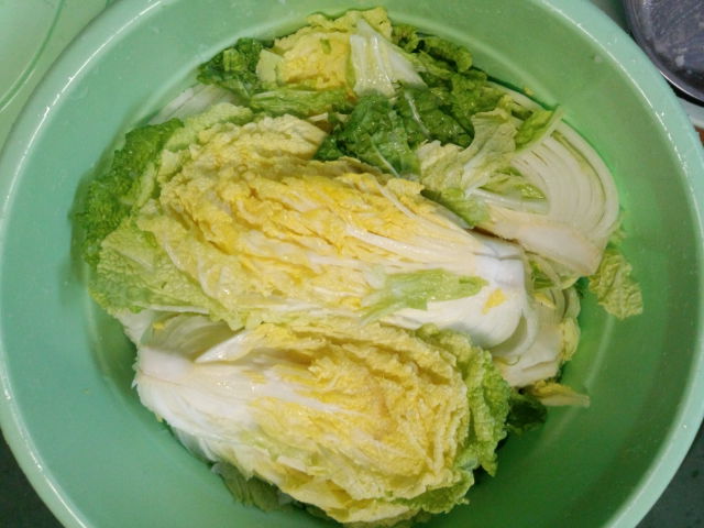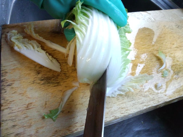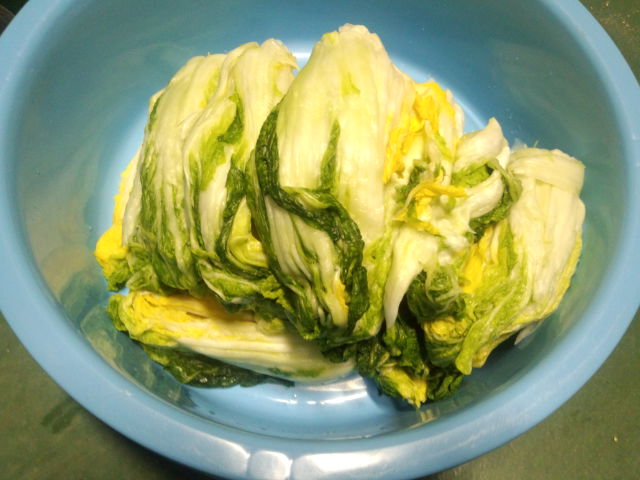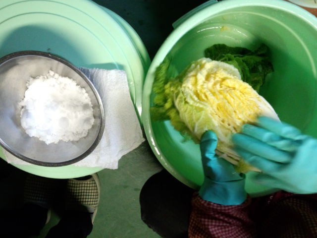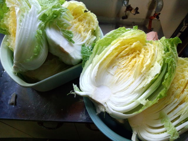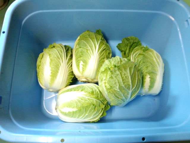 今日収穫した白菜で、毎年恒例の漬物を作る。