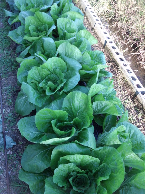 奥から、ターサイ、高菜、ニューヨークレタス、白菜