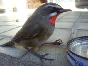 窓ガラスにドスンと衝撃が。何事かと外に出ると、小鳥が伸びてる。 いやはや、今夜のつまみは焼き鳥かとおもいきや、未だ息がある様子。