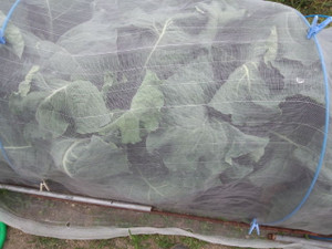 南の畑のブロッコリーと、カリフラワーが、育ちすぎて、防虫ネットに入りきらなくなった。