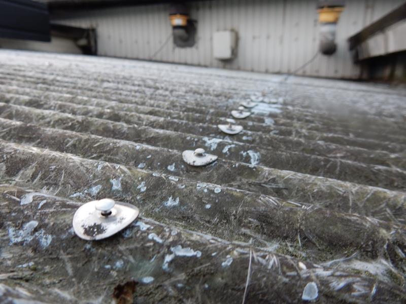 先日、差掛けの屋根を見ると傘釘が浮いていました。