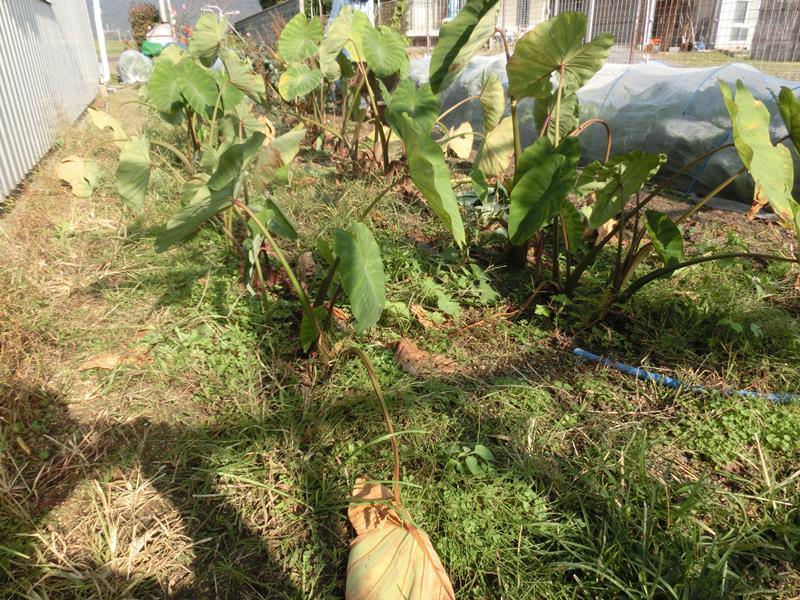 本日は里芋の収穫&豆の種まき