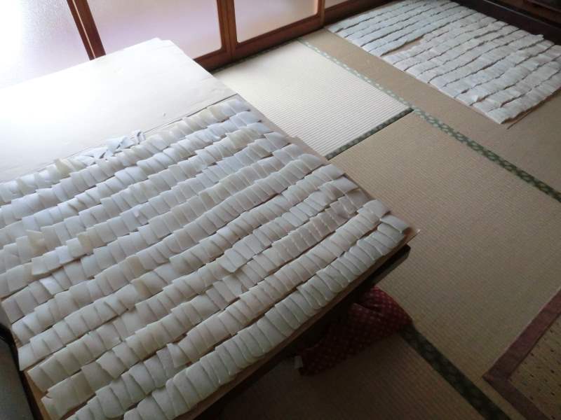 乾燥のため、ダンボールの上に広げて1周間