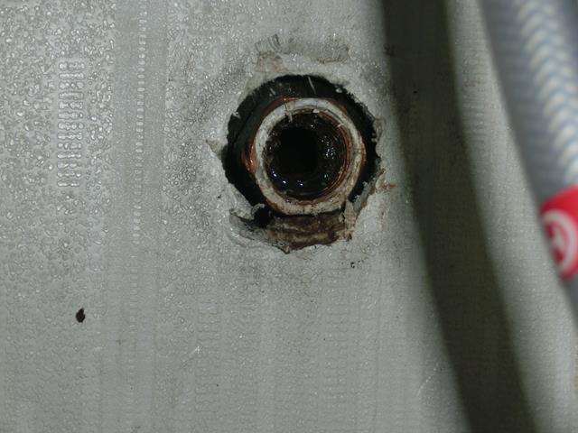 水栓の付いていた所は水垢が溜まります。