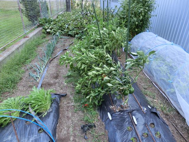 ピーマンや、ネギがたおれています。