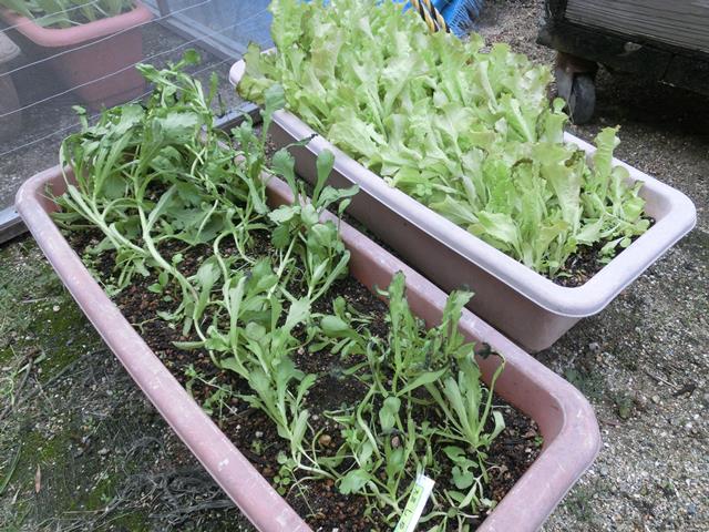 プランターのチシャと小松菜