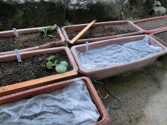 NHKの野菜の時間などで、不織布を張ると雨で種が流れないと放送していました。