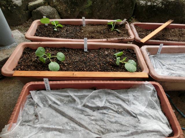 大根は、穴を開けて種を蒔くのに、人参と同じように筋蒔き様に切手しまいました。